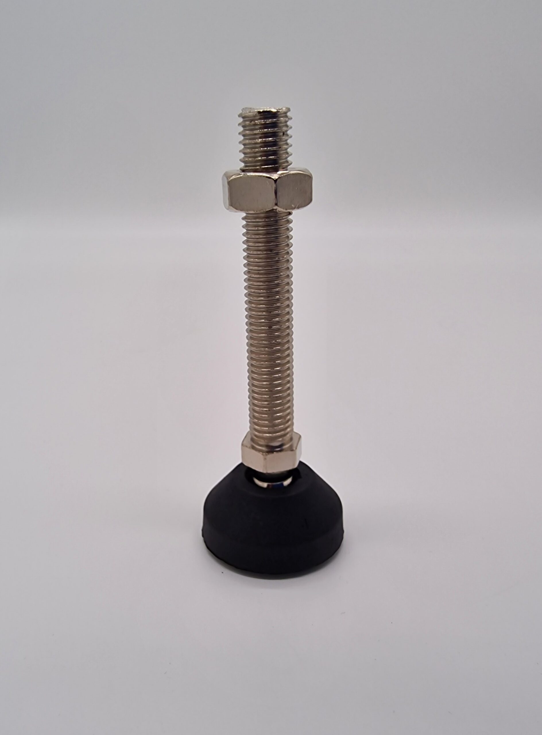 Höhenverstellbarer Kunststoff-Fuß Ø40mm mit Stoßdämpferkappe. Schraube aus verzinktem Stahl, M12, Länge 80mm. Für Maschinengestelle, Werkbänke oder Regale.
