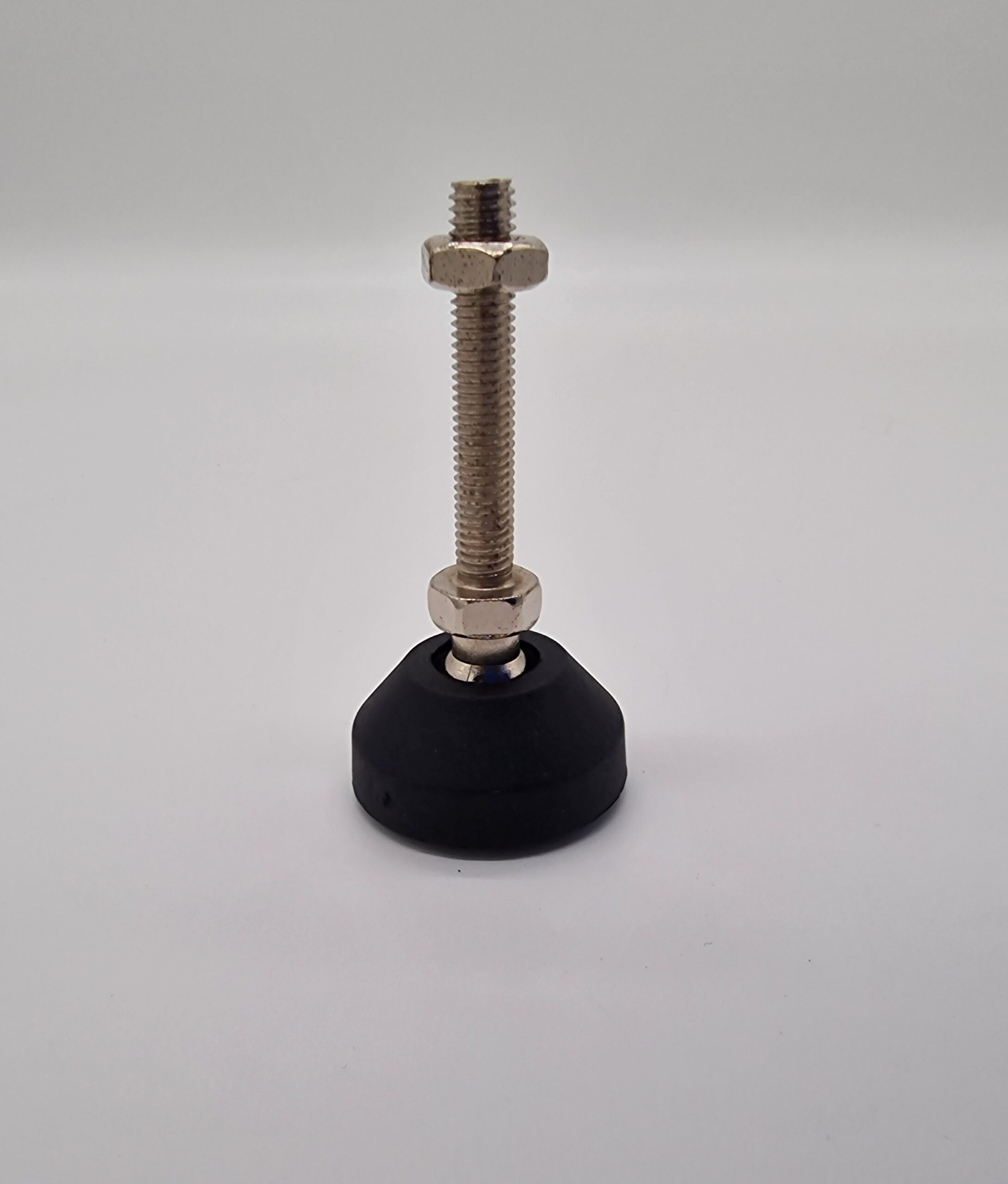 Höhenverstellbarer Kunststoff-Fuß Ø40mm mit Stoßdämpferkappe. Schraube aus verzinktem Stahl, M8, Länge 50mm. Für Maschinengestelle, Werkbänke oder Regale.