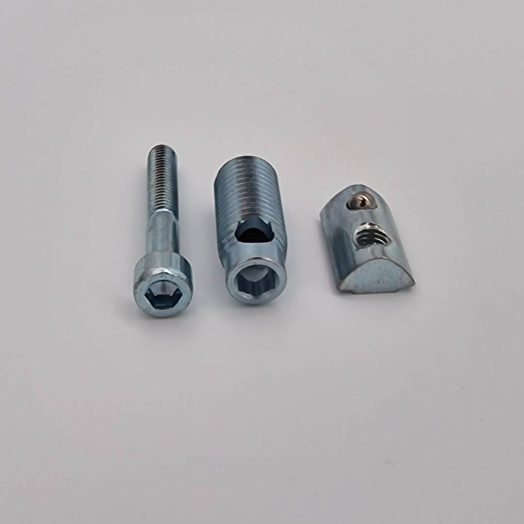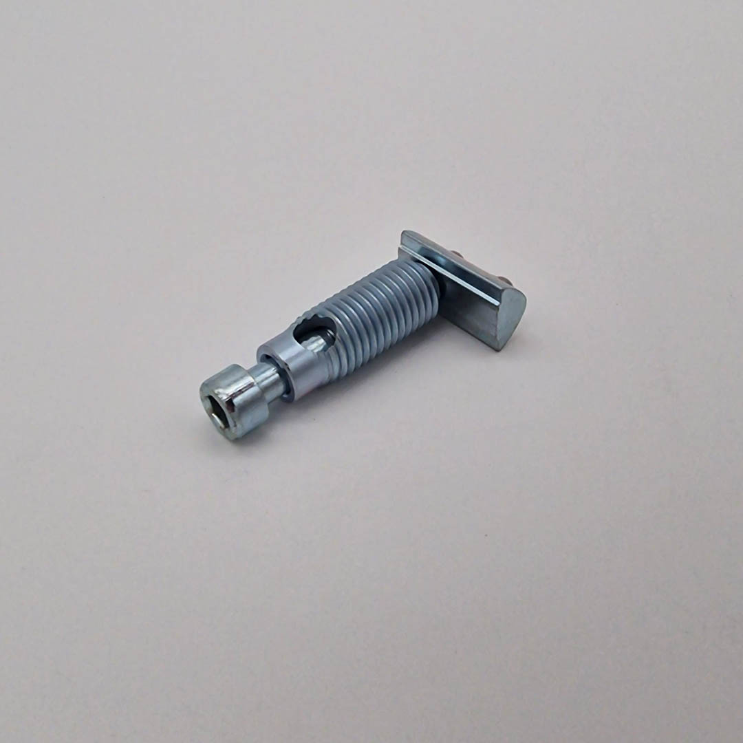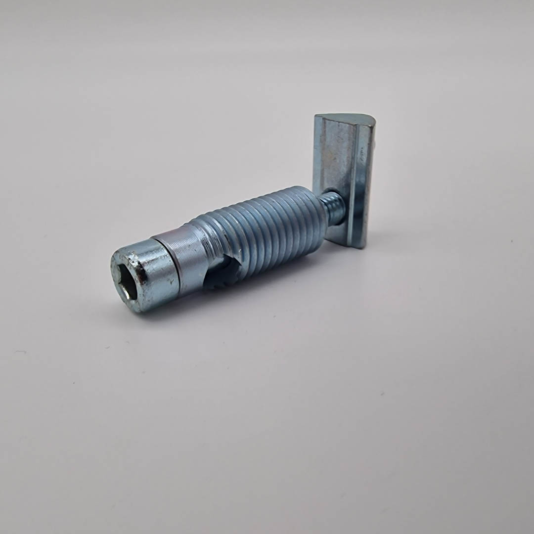 Die Hülse wird mit einem Torx T50 in die hinterschnittene Längsnut eingebracht und am Querprofil im Nutenstein verschraubt.