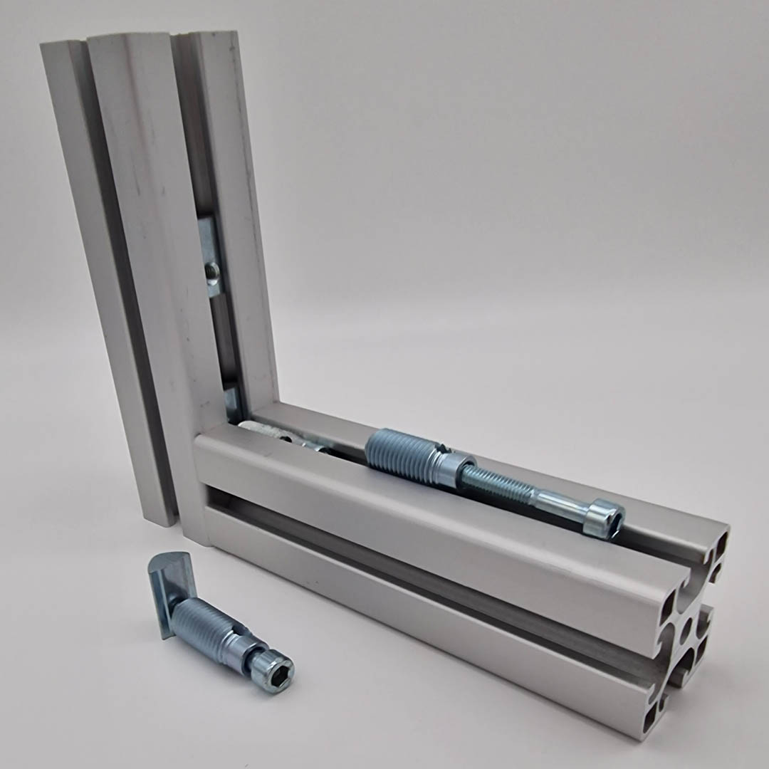 Mit dem von uns patentierten Gewindeformverbinder lassen sich die schnellsten und stabilsten 90°-Verbindungen herstellen.