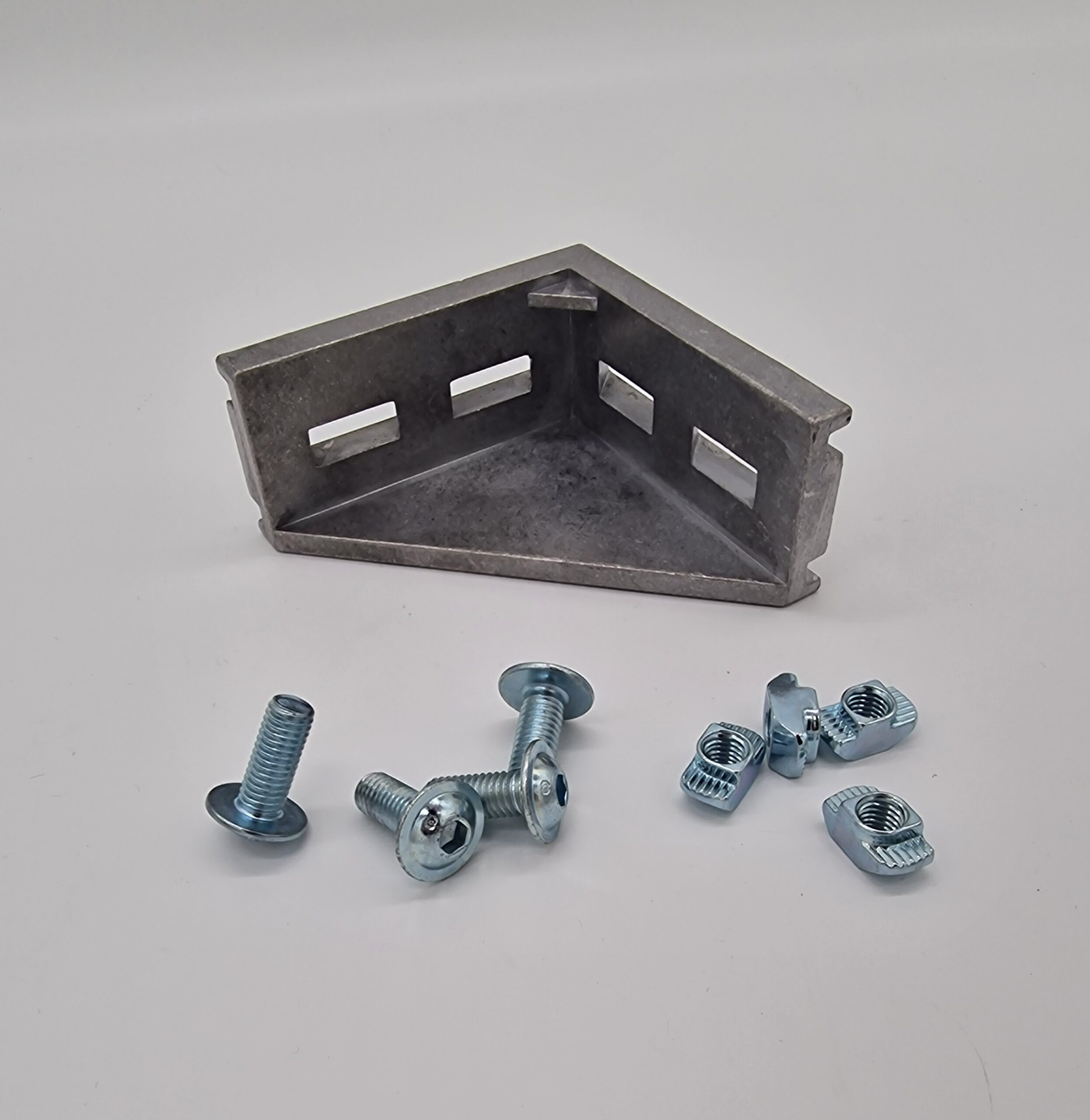 Der Winkel wird zur stabilen, bearbeitungslosen 90°-Verbindung zweier Profile eingesetzt. Außerdem dient der Winkel zur ergänzenden Verstärkung von Profilverbindungen.